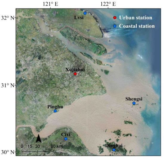 Figure 4. Locations of Xujiahui and five coastal stations.