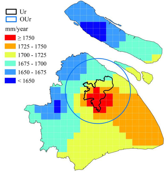 In the current study, we considered changes in built-up area as one of the most important factors that influence the occurrence and intensity of urban precipitation [86,87]. We also demonstrated that precipitation trends show different characteristics in the Ur, OUr and OS regions in Shanghai, during the period of rapid urbanization. However, further efforts are still needed to determine changes in other factors interlinked with urbanization in Shanghai, for example, the impact of urban heat island (UHI) effects on precipitation. In addition, apart from LULC changes, influences of natural external variability including extreme precipitation is also very important and is often assumed to scale with changes in atmospheric moisture and content [88] and large-scale circulation patterns [89]. As a coastal city, precipitation in Shanghai is not only influenced by anthropogenic activities but is also affected by adjacent oceans. Therefore, detailed analyses of observed trends in temperature change in Shanghai during urbanization and the effects of regional and nearby oceanic influences on precipitation, should be thoroughly investigated.