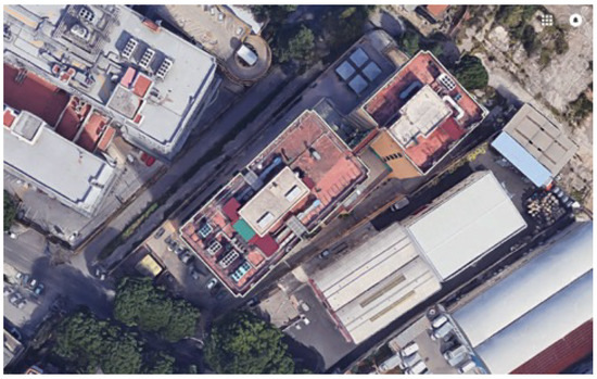 An office located in the National Research Council building in Palermo (09′55.4″ N, 1318′34.9″ E) was considered as a case study to test the proposed approach to improve the comfort conditions. Figure 2 shows the Google view of the building. The choice of the office was based on the feedback of some workers unsatisfied with their environmental conditions. The office is generally occupied by two workers on different days and different hours of the day. For this reason, in this study, only one worker was selected to conduct the questionnaire. The room selected as a case study (Figure 3) is characterized by an area of 21.41 m (6.15 × 3.50 m). It includes some furniture: a table with four workstations, two book cabinets close to the door, and a small cabinet on a wall. On the shorter wall, there is a window 1 m from the floor, and it is 2.3 m large.