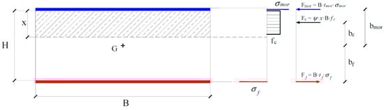 Equilibrium of strengthened masonry section including the effect of mortar matrix of the composite in compression–dimensional form.