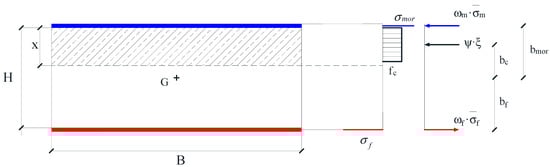 - ψ and λ are the coefficients (dimensionless) that correlate to the real non-linear stress distribution to the uniform distribution and the distance of the resultant of real non-linear stress distribution to the neutral axis depth, respectively [37];