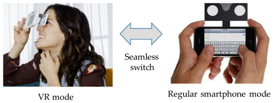 7]). The open configuration also makes the immediate switch to the regular smartphone mode quite possible and vice versa (e.g., switch between VR and texting, see