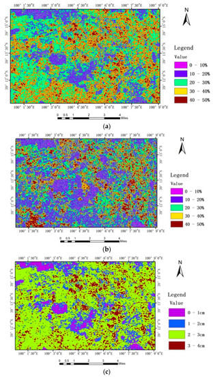(3) It is valid to invert soil moisture and Hrms based on CIEM, which uses an empirical correlation length lopt as proposed by Baghdadi, which avoids the actual measurement error of the correlation length and improves the inversion accuracy.