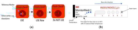 - Food Fresh Indicators-Shelf Life Label. Available online: https://www.indiamart.com/proddetail/food-fresh-indicators-shelf-life-label-8226669333.html (accessed on 21 March 2020).