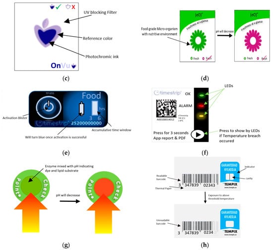 - Sharrock, K.R. Advances in freshness and safety indicators in food and beverage packaging. In Emerging Food Packaging Technologies: Principles and Practice, 1st ed.; Yam, K.L., Lee, D.S., Eds.; Woodhead Publishing: Cambridge, UK, 2012; pp. 175–197. [Google Scholar]
