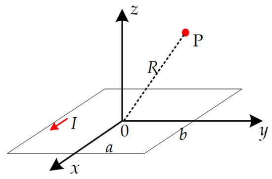 The side length of the rectangular loop antenna are a and b respectively. When the rectangular loop antenna is electrically small, the magnetic field intensity at the field point P (x, y, z) could be calculated by Biot–Savart law [24],