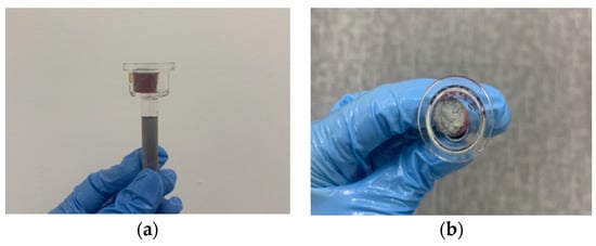 Figure 10 shows the Raman spectroscopy specimens, and the results of the spectrum analysis using the Raman spectrometer are provided in Figure 11. The MWCNT-added specimen exhibited a peak at 1350 cm−1, which was the same as in the graphite spectrum (called G band, with a range of 1330–1360 cm−1) []. The intensity of the spectrum was the highest (about 78) in the MW-L MWCNTs, indicating that relatively homogeneous dispersion was achieved in the cement composite, compared with the powder MWCNTs.
