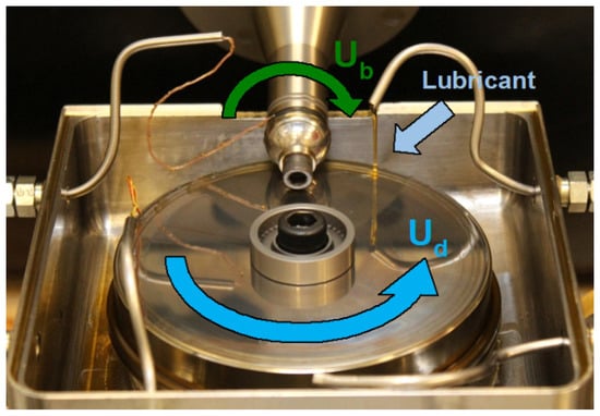 - Riggs, M.R.; Berkebile, S.P.; Murthy, N.K. Ball-on-DiscTribometers Protocol Development: Loss of Lubrication Evaluation; US Army Research Laboratory: Aberdeen Proving Ground, MD, USA, 2016. [Google Scholar]
