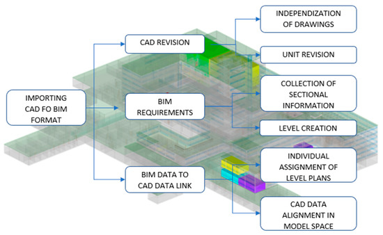 CAD and BIM software must be checked. Moreover, BIM software model demands independent CAD information at a high level thus a restructuring of CAD information was developed to achieve the correct insertion of CAD data into BIM environment.