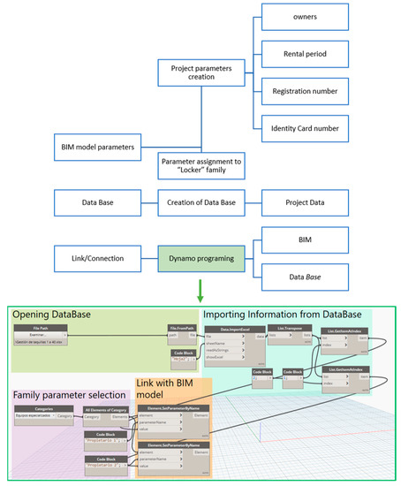 The BIM model was focused on the infrastructure management of the ETSICCP. In this way, the BIM model needed to house a large amount of data [19,20,21] and to enable the provision of useful information related to updated drawings [3], quality control [27,28], space and energy management [19,29], or emergency situations [20]. Under this scope, BIM enhances its efficiency due to the incorporation of new technologies, like IoT, linking, and synchronizing with databases or 3-D scanning information ascribed to the model. Facing the synthesis of methodologies of such unequal nature, it gives rise to ontological problems based on the existing incompatibility of the generated information.