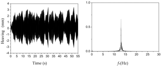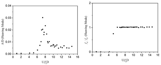 Heaving mode oscillation details (U = 7.8 m/s, U/f0D = 7.4) of the two-dimensional (2D) section model.