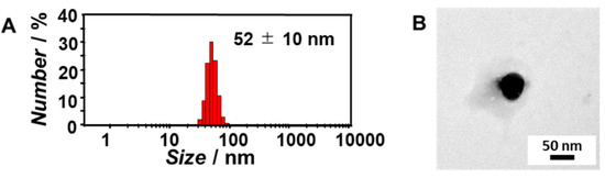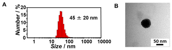 Transmission electron microscopy (TEM) images were obtained with a JEOL JEM 1400 Plus (JEOL Ltd., Tokyo, Japan), using an accelerating voltage of 80 kV. Aliquots (5 µL) of DLS samples were applied to hydrophilized carbon-coated Cu-grids (C-SMART Hydrophilic TEM girds, Alliance Biosystems, Osaka, Japan) for 60 s and then removed. Subsequently, the TEM grid was instilled in the aqueous solution (5 µL) of 2% phosphotungstic acid, Na3(PW12O40)(H2O)n. The staining solution was removed after 60 s and the sample-loaded grids were dried in vacuo.