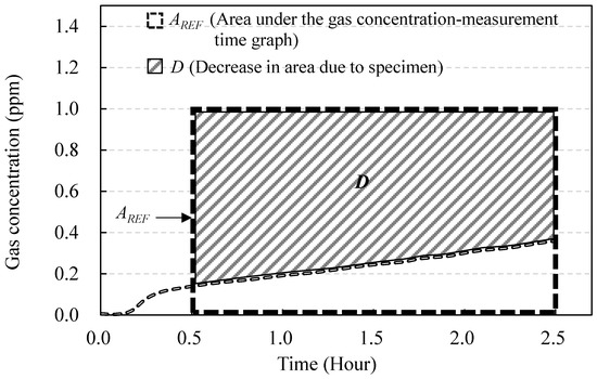 where is the area under the graph of the variation of the gas concentration with respect to the time in the chamber, and is the decrease in the graph area of the SOx or NOx concentration due to the specimen (Figure 6). The microstructures and compositions of the textile fabrics coated with zeolite and coconut shell activated carbon were examined using SEM and energy dispersive X-ray spectroscopy (EDS) using an electron microscope.