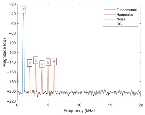 However, windowing affects the power of frequencies within the DUT output spectrum, which has an impact on the accuracy of ADDR. Thus, the spectral bins need to be corrected []. According to [,], the true magnitude of the narrow-band input signal, harmonics and spurious spectral components can be corrected by