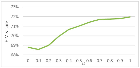 Thus, to strike the balance between classification performance and the ability to cover more diverse range of words, we decided the use the value of α as 0.7 since it has comparable performance (a F-measure of 71.73%) as when α = 0.8 (F-measure of 71.76%) and 0.9 (F-measure of 71.80%), but more diverse word coverage.