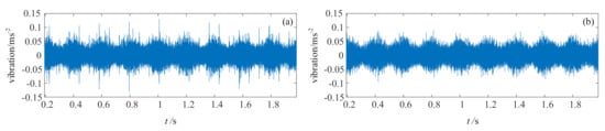 During the simulation, rotating frequency of the carrier is 5 Hz, which means the period of carrier rotation is 0.2 s. From Figure 6, we can see the vibration signal amplitude varies when the gearbox runs. Its period is 0.2 s as well, which indicates that the vibration signal is modulated by the planetary movements.
