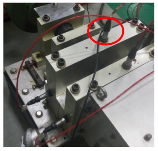 Figure 18 shows the vibration sensors that were used to collect vibration signals during the test. Two sensors were installed on each planetary stage in vertical and horizontal direction, respectively. Sampling rate is 5.12 kHz. Signal collected in the vertical direction is used for further analysis; the sensor is highlighted with a red circle in Figure 18. Tachometer is located at the carrier shaft to collect once-per-revolution tachometer signal.