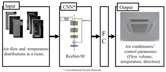 We employed ResNet-50 [17] as a model for inferring air conditioners’ control parameters. We then add full connection layer for the regression and classification of air conditioners’ parameters. Figure 2 shows the overall pipeline of our method.