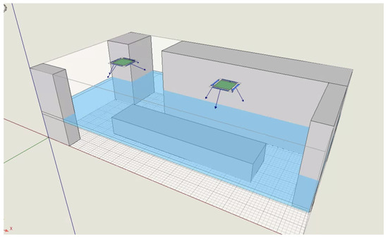 We conducted the evaluation with the small room shown in Figure 3 which has two air conditioners under the ceiling. We used a ResNet-50 model pretrained with the ImageNet and ResNet-50 models without pretraining. Both models are trained with 300 epochs with an Adam optimizer and mean squared error (MSE) Loss. We employed the ResNet in Keras with the default setting and do not conducted parameter tuning for the training. We generate 10,000 images for the training.