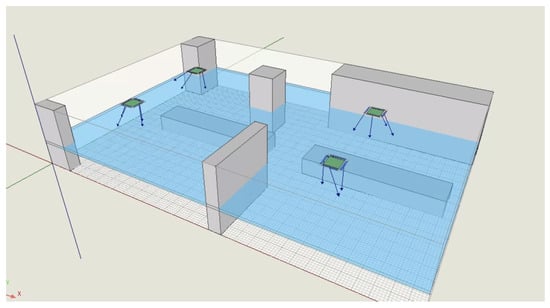 We conducted an evaluation with a large room shown in Figure 4 which has four air conditioners under the ceiling. In the same way as the evaluation with small room, we used ResNet-50 with pretraining with ImageNet. We trained the model for 600 epoch, and the other training parameters were the same as the evaluation with the small room. We conducted 5100 simulations for generating the training dataset.