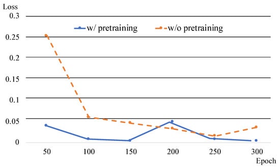 We conducted Welch T-test to confirm significant differences between the model with pretraining and without pretraining. The result of the Weltch T-test with a significance level 0.05 is shown in Table 3. Along with these results, there was no significant difference in the airflow volume but there is significant difference in the temperature. Figure 7 shows the variations of the loss with pretraining and without pretraining. The pretrained model decreases the loss earlier than the model without pretraining. Thus, the pratraining has an advantage to reduce training time but its performance is lower than the model without pretraining. From these results, we can conclude that the Non-pretrained model can produce better thermal environment if the computational resources for training model and data generation are available.