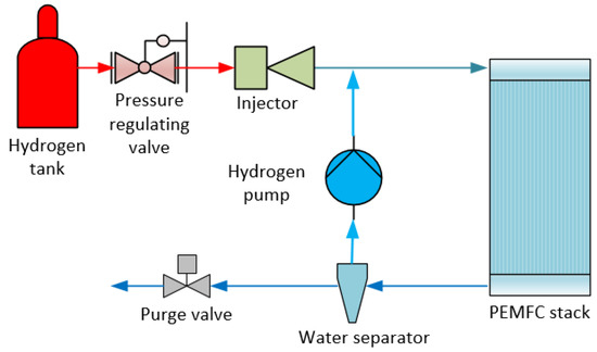 Schematic diagram of the hydrogen supply loop in a proton exchange membrane (PEM) fuel cell system.