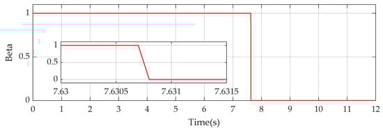 As introduced in Equation (35), to avoid the singularity, the lower limitation should be set to be greater than zero and then, the switching α should be kept at 1 at all times. Therefore, the Equation (24) is equivalent to: