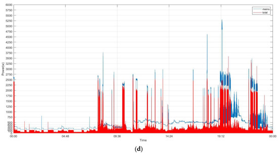 Shown power demand of most of the electrical appliances: (a) fridge; (b) htpc; (c) washer dryer; (d) other submeters.