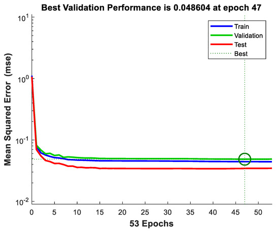 In this experiment, more NIALM data instances, a total of 989 NIALM data instances, are sampled from the house environment and used to experimentally verify the performance of a feed-forward, multilayer ANN (Figure 5a) in terms of load recognition. A network configuration of 1-23-12 of a feed-forward, multilayer ANN was constructed, specified, and used. Also, the feed-forward, multilayer ANN was trained on 643 randomly sampled training data instances (~65% of the whole dataset) and tested on the remaining 346 test data instances. The training trajectory of the feed-forward, multilayer ANN is shown in Figure 10. The resulting MSE was 0.044 (the initial MSE was 1.110). The feed-forward, multilayer ANN can learn from the training data instances across all available CPU workers on the PC used. Table 8 tabulates the load recognition results obtained by the feed-forward, multilayer ANN where it has been well-trained and -validated. In Table 8, the F1 score is shown to each load class. Table 9 also tabulates the load recognition results obtained by the well-trained and -validated feed-forward, multilayer ANN applied on class-imbalanced test data. In Table 9, TPR vs. FPR is also shown for each load class.