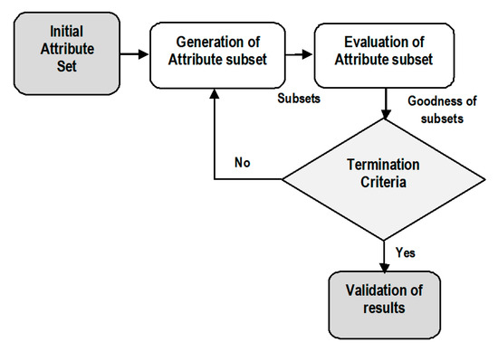 In general, an attribute selection process is divided into four phases which include the following [8].