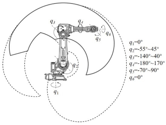 a1, which is the basic rotation axis of the robot structure, and a6, which is a 360° rotation axis controlling the flange, are proved to be nonsignificant in changing natural frequency by preliminary researches on 6R robots including KUKA KR60, ABB IRB6400, and IRB 4600. As low order natural frequencies is mainly decided by robot configuration, none end-effector is fixed on the flange in above cases for general research. Hereby, q1 and q6 are excluded from model (q1 = q6 = 0° in practice) for the simplification, and q2–q5 are applied as variables. Prediction model can be adapted to