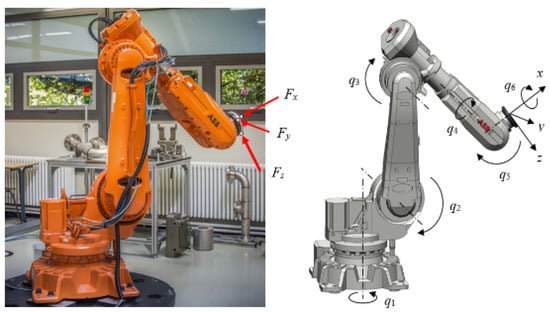 - Bisu, C.; Cherif, M.; Gerard, A.; K’Nevez, J.Y. Dynamic Behavior Analysis for a Six Axis Industrial Machining Robot. Adv. Mater. Res. 2011, 423, 65–76. [Google Scholar] [CrossRef]