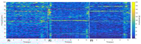 Short-time fourier transform (STFT) of vibration signals of P1–P3.