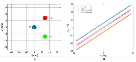 In particular, the new shaped sensors cluster was designed, so that the MDDP is again . Figure 2b illustrates the worst-case error for this configuration, in terms of upper and lower bounds.
