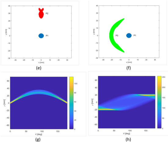 Finally (Point (c)), the Projection Slice Theorem [23] states that the bidimensional FT at the angle of a given function, is equal to the mono-dimensional FT of the Radon Transform of that function. This implies that the Directivity function, and therefore the frequency response, can simply be calculated as the monodimensional FT of the RT of the shape function and by evaluating into . As a consequence, the relations (3) and (4), i.e., (9) in frequency, with and specified in (6) are obtained by imposing two suitable relations between the RT of sensor P1 and the RT of sensors P2 and P3: