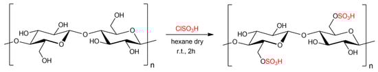 - Zhang, K.; Peschel, D.; Bäucker, E.; Groth, T.; Fischer, S. Synthesis and characterisation of cellulose sulfates regarding the degrees of substitution, degrees of polymerisation and morphology. Carbohydr. Polym. 2011, 83, 1659–1664. [Google Scholar] [CrossRef]