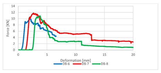 In addition to testing slabs, accompanying test specimens were also made to determine the properties of concrete. Five test specimens for laboratory determination of compressive strength and three test specimens for determination of working diagram of concrete by bending. Table 2 shows the results of the SFRC properties. Figure 1 shows results of flexural strength measurements for samples made of SFCR.