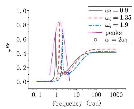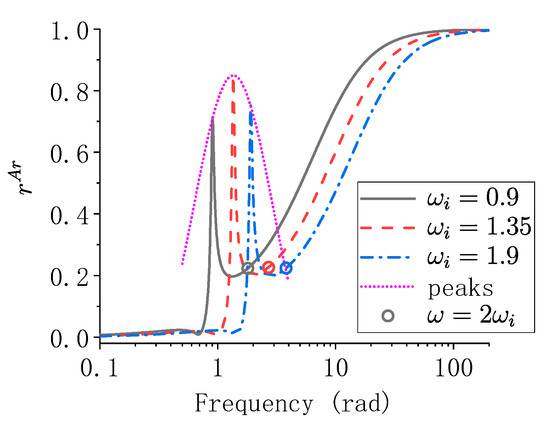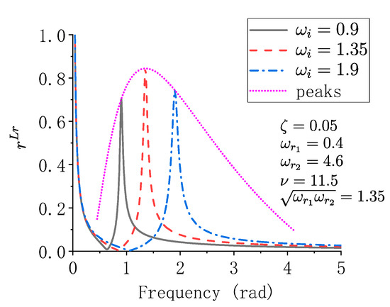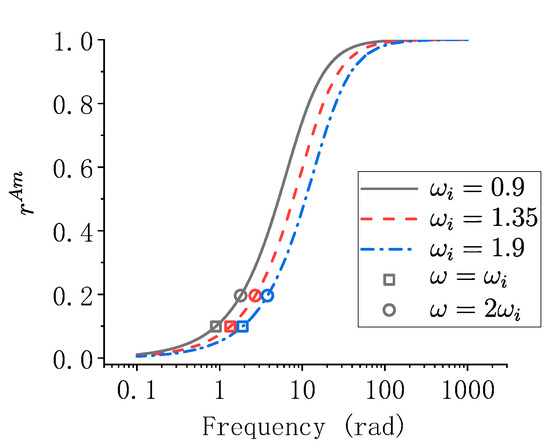 Figure 3 is an example used to show the feature of and its variation with the change of the modal natural frequency; the parameter settings are the same as Figure 2.