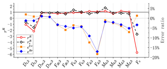 In Equation (46), represents the extreme value of the damping truncation error of RMM-R when varies from 800 m/s to infinity. is used to measure the error ratio of the damping truncation error when uniform excitation is assumed. is used to measure the relative amplitude of the damping truncation error in the MSE problem and the damping truncation error of the corresponding uniform excitation problem; is used to measure the relative amplitude of error ratio of these two conditions.