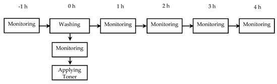 SebumScale® can be used to assess skin sebum levels effectively. Moreover, SebumScale® has been used widely in a number of studies, including an analysis of skin sebum excretion performed with patients who received treatments with broadband light [31]. The measurements were made according to the manufacturer’s instructions. The experiment was conducted in an air-conditioned, clean room to reduce the impact of confounding factors such as ambient temperature, humidity, daily rhythm, and hormonal balance [32]. Usually, sebum recovery takes approximately 2–3 h after washing to the casual level [33]; therefore, the period of 4 h was set for this study to cover the period of sebum recovery.