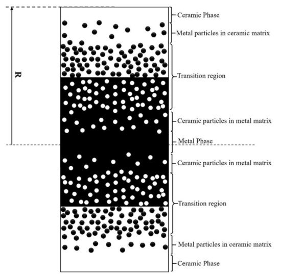 Distribution of metal and ceramic phases along the radial direction of a functionally graded (FG) shaft.