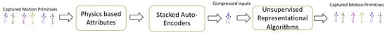 Figure 3 presents the main architecture of the proposed unsupervised approach for dance summarization. Initially, from each coordinates of a skeletal dancer’s joint, kinematics attributes are extracted such as velocity and acceleration [8]. Then, the enhanced 3D motion primitives are forwarded into a stacked auto-encoder with the main purpose of compressing (encoding) the raw motion captured attributes into low dimensional representations. Encoding is performed in a way that the decoder is able to optimally reconstruct the raw input signals from the compressed ones, significantly reducing spatio-temporal redundancy [10,13]. The final module of the proposed architecture is the unsupervised representational algorithm for extracting the most importance key-frames of the dance sequence. The representational algorithm receives the low dimensional compressed data as inputs instead of the high redundant (both in space and time) raw signals, improving the overall summarization performance.