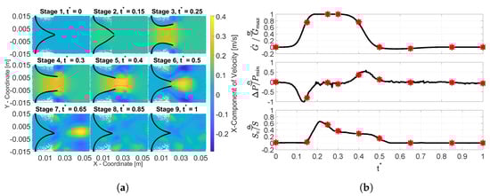 y planes) and not in three, as the experimental setup. Besides, the experimental data are averaged across all cycles to produce a single representative cycle, reducing all possible measurement noise. On the contrary, FSI simulations are merely carried out for a single cycle; hence, noise reduction by averaging the signal was not possible.