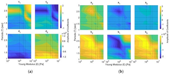 Regarding the computational time, the training process for each period took 13 s approximately; hence, obtaining the results of the nine periods for both outputs, for one elastic modulus, took less than 4 min to finish the process. Considering this time, our ARX model calculated all 45 vectors for the training part of both outputs in about 20 min. Thereby, the execution time using the ARX model represents only 0.0465% of the total time (716.5 h) consumed by doing the forty-five FSI simulations of the parametric study. This means that once our model is trained, we can obtain estimations to complement further cases with it instead of doing more FSI simulations, which would require more computational time.
