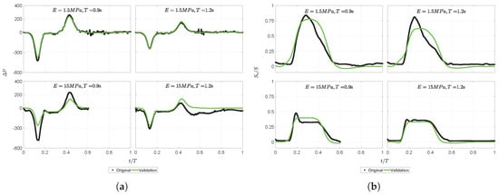 E = 1.5 MPa, T = 1.2 s: both conditions are located inside the training dataset.