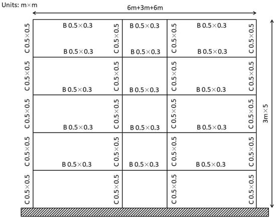 The example reinforcement concrete (RC) five-storey three-bay frame structure.