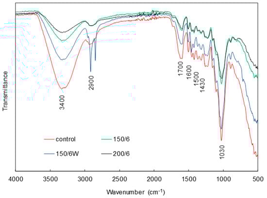 FTIR spectra of control and modified samples.