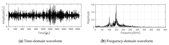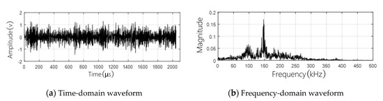 By comparing the time-domain waveform between the normal and distorted signals, it can be seen that the signals are both continuous-type signals and the amplitude of the distorted signal exceeds largely over the normal signal. By comparing the frequency-domain waveform between the normal and distorted signals, it can be seen that the energy lies mainly in the frequency band in the range of 50–250 kHz, and the most obvious frequency component is 150 kHz, followed by 100 kHz. Meanwhile, the proportion of the 100 kHz frequency component in the distorted signal is significantly higher than that in the normal signal. From the time-domain waveform and frequency-domain waveform, it can be seen comprehensively that there are certain differences between the normal signal and the distorted signal. However, there are also some overlaps in the main frequency, which will affect the signal identification.
