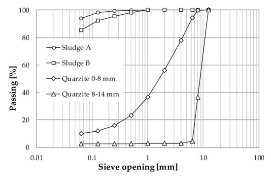 Preliminary analysis of aggregate fractions and sludge included the determination of particle size distribution and specific gravity (SG) as per corresponding EN standards [,].