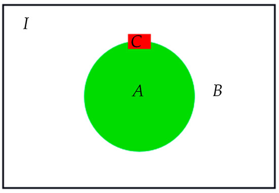 Suppose the specimen is described as a full set I and a defect inside the bulk of specimen is depicted by a subset A, such that the sound area (i.e., defect-free) inside I is the complementary set of A, which is called B. Obviously, . If any small segment of the defect edge is arbitrarily selected, the small local area surrounding the selected edge segment is called a sensitive region and it is depicted as C in Figure 2.